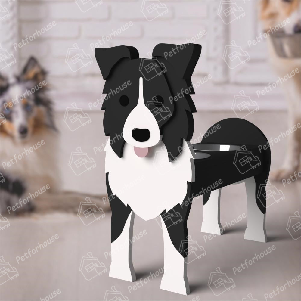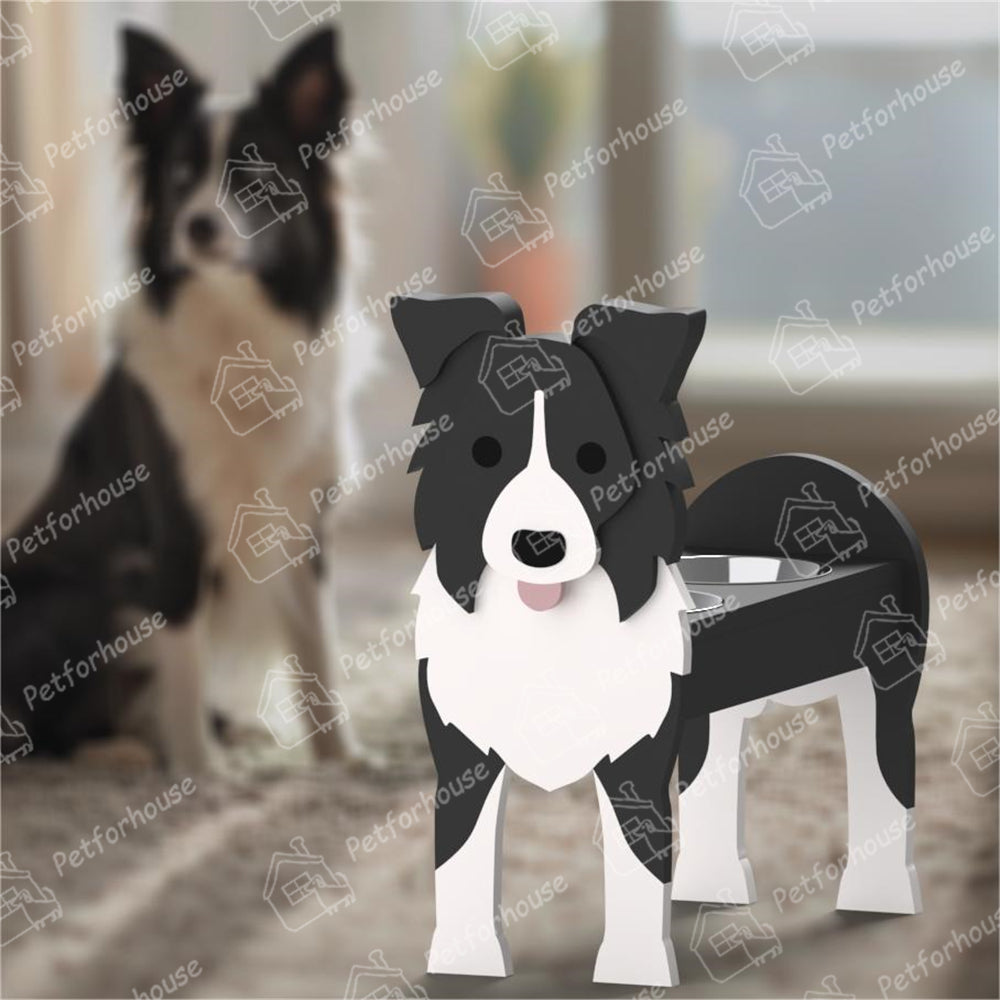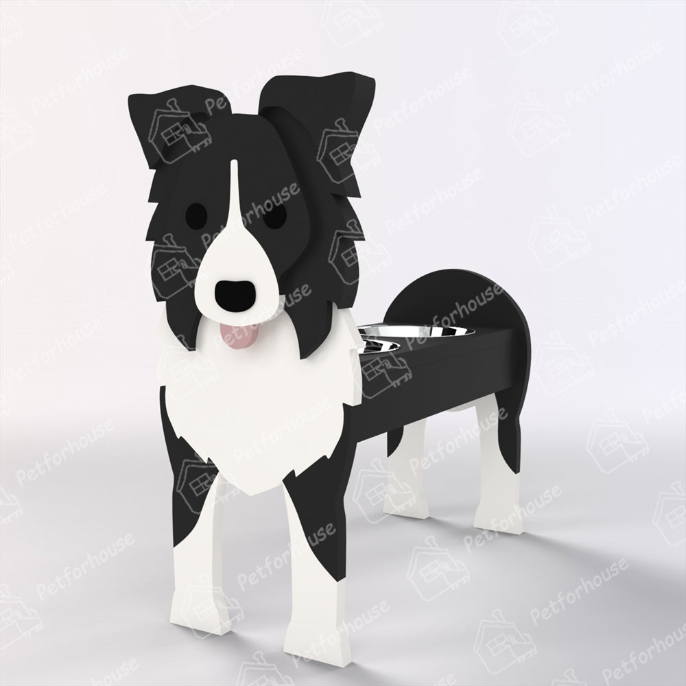 Border Collie Pet Food Bowl Holder